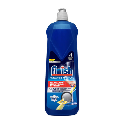 Finish parlatıcı, yeni ve geliştirilmiş formülüyle bardak ve tabaklarınızı hem parlatır hem de kurutur, su lekelerinin oluşumunu engeller.Üstelik limon ferahlığı sağlar.Lekesiz bir pırlanta ışıltısı için Finish özeltuz ile birlikte kullanınız.