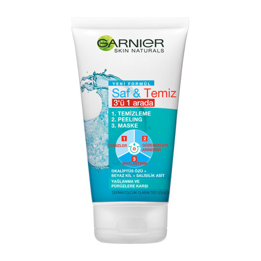 Yağlanma ve pürüzlere karşı 3'ü 1 arada çözüm,temizleme,okaliptüs özü,salisik asit ve çinko türevi ile zenginleştirilmiş formül,cildi yoğun bir şekilde temizler ve fazla yağdan arındırır.Peeling,cildi ölü hücrelerden arındırır,gözenekleri temizler.Maske,cilde daha yumuşak bir his verme özelliğiyle bilinen beyaz kil içeren formülü,ciltteki parlamayı azaltır.