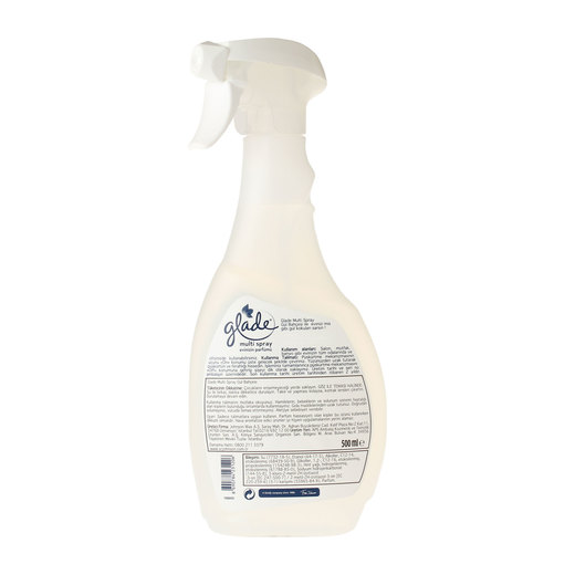 Glade multi sprey,püskürtme mekanizması ve etkili parfümleriyle çok amaçlı kullanım sağlar. Evinizin her köşesini, ofisinizi, yaşanan tüm mekanları,hoş ve kalıcı parfümü ile daha keyifli bir hale getirir.