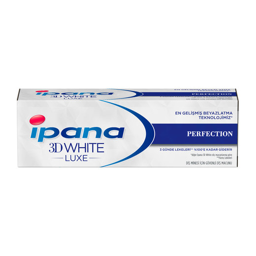 3 boyutlu beyazlık luxe perfection diş macunu ipana’nın en gelişmiş beyazlatıcı diş macunu.Perfection beyazlık diş macunu, diş lekelerini yok eden ve yeniden oluşumlarını engelleyen özel formülü ile gülüşünüzün güzelliğini arttırırken diş minenizi de korur.