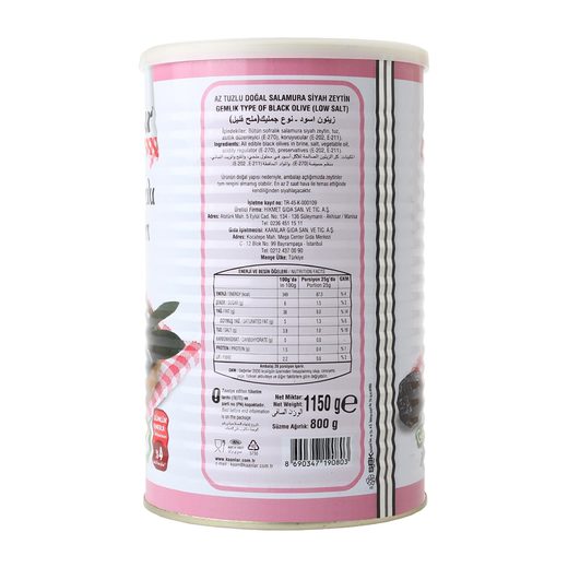 KAANLAR Kaanlar Az Tuzlu Siyah Zeytin 800 gr