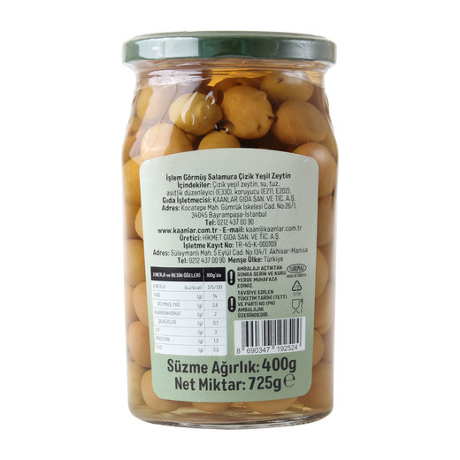 KAANLAR Kaanlar Yeşil Çizik Zeytin Çizoli 400 gr