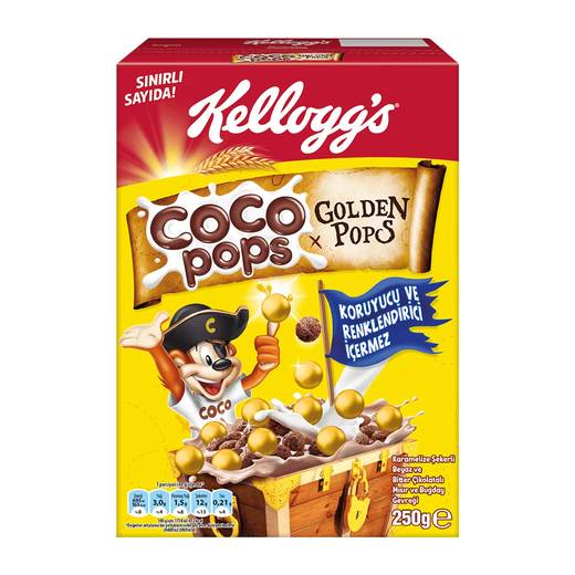 Güne Beyaz ve Bitter çikolatalı mısır ve buğday gevreği Kellogg's Coco Pops Golden Pops ile başlayın.