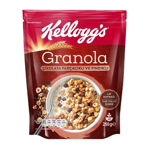 KELLOGGS YENİ Kellogs Granola Çikolata Parçacıklı Fındıklı 250 gr