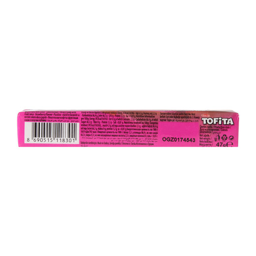 Tofita gerçek meyve lezzetlerinin tadına varmak isteyenlerin yegane eğlencesi.1999’dan beri pazarda olan Tofita, meyve aromaları ile en sevilen yumuşak şeker markası.Tofita’nın bu lezzetli meyve çeşitleri, Böğürtlen, Portakal, Vişne, Çiğnerken eğlenirsin.