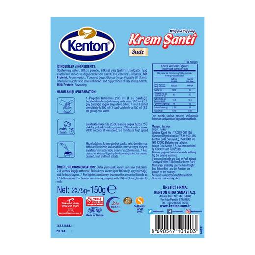 Yoğun kıvamı, çatlamaya dayanıklı formülü ile daha lezzetli tatlılar hazırlamanız için Kenton sade krem şanti. Pasta, dondurma ve tatlılar, meyve salataları, sıcak içecekler için ideal.