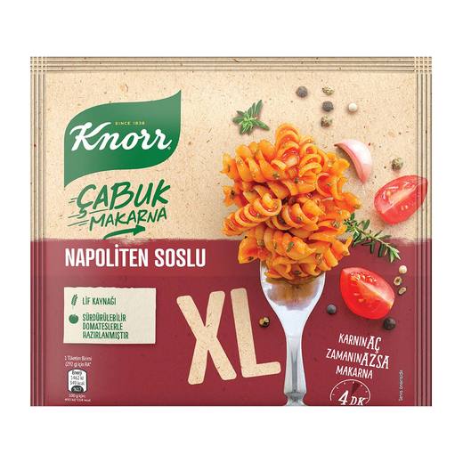 Karnınız aç zamanınız azsa, Knorr Çabuk Makarna 5 dakikada hazır! Enfes Napoliten soslu makarna için ihtiyacın olan tek şey sıcak su. Su ısıtıcısında kaynattığın suyu, paket içinde gösterilen alana kadar doldur, iyice karıştır, kapağını kapat, 5