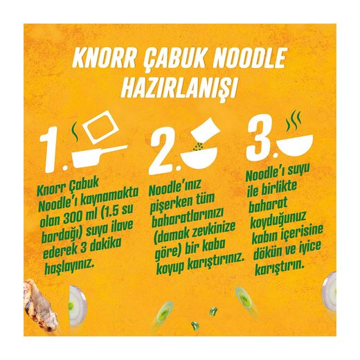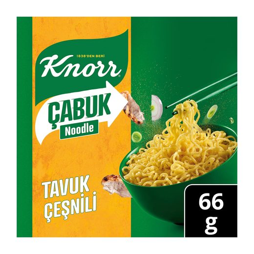 Knorr çabuk Noodle tavuk çeşnili hem lezzetli, hem pratik. Sebzelerden gelen lezzet. Düşük doymuş yağ.