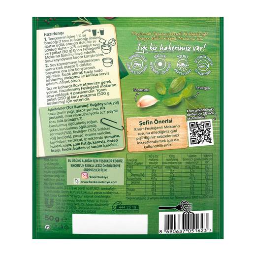 Knorr makarna sosunun Fesleğen aromasıyla makarnalarınızı lezetlendirecek.