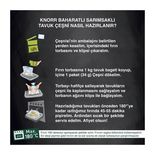 Knorr şefleri tarafından özenle hazırlanmış baharat karışımı ve sarımsağın mükemmel uyumu ile Knorr baharatlı sarımsaklı çeşni sayesinde tadına doyum olmayan, mükemmel tavuklar hazırlayın.