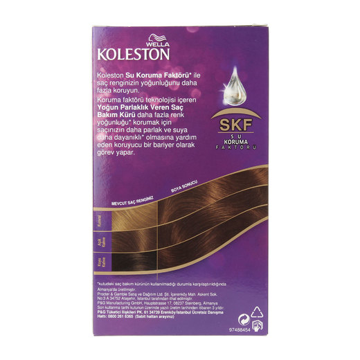 Koleston kalıcı krem saç boyası, renk pigmentlerinin saçın derinine işlemesini sağlayarak, mükemmel beyaz kapama özelliği ile saçınıza yoğun bir renk verir. İçeriğindeki su koruma faktörü yoğun rengin korunması için saçınızı daha parlak ve suya dayanıklı hale getirmeye yardımcı olur.
