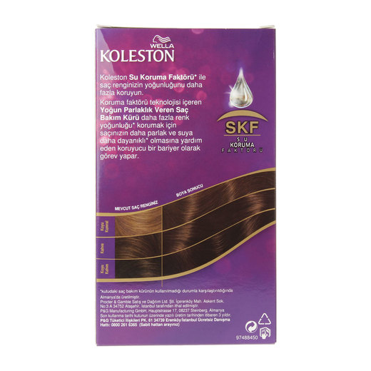 Koleston kalıcı krem saç boyası, renk pigmentlerinin saçın derinine işlemesini sağlayarak, mükemmel beyaz kapama özelliği ile saçınıza yoğun bir renk verir.İçeriğindeki su koruma faktörü yoğun rengin korunması için saçınızı daha parlak ve suya dayanıklı hale getirmeye yardımcı olur.