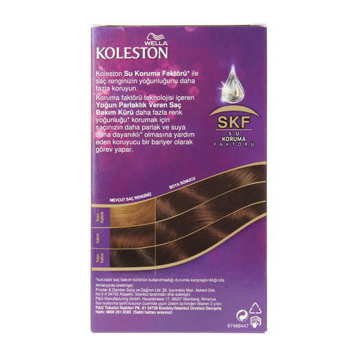 Koleston kalıcı krem saç boyası, renk pigmentlerinin saçın derinine işlemesini sağlayarak, mükemmel beyaz kapama özelliği ile saçınıza yoğun bir renk verir.İçeriğindeki su koruma faktörü yoğun rengin korunması için saçınızı daha parlak ve suya dayanıklı hale getirmeye yardımcı olur.