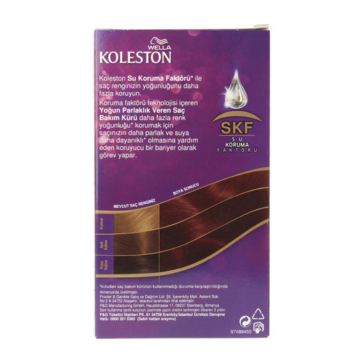 Koleston kalıcı krem saç boyası, renk pigmentlerinin saçın derinine işlemesini sağlayarak, mükemmel beyaz kapama özelliği ile saçınıza yoğun bir renk verir. İçeriğindeki Su Koruma Faktörü yoğun rengin korunması için saçınızı daha parlak ve suya dayanıklı hale getirmeye yardımcı olur.