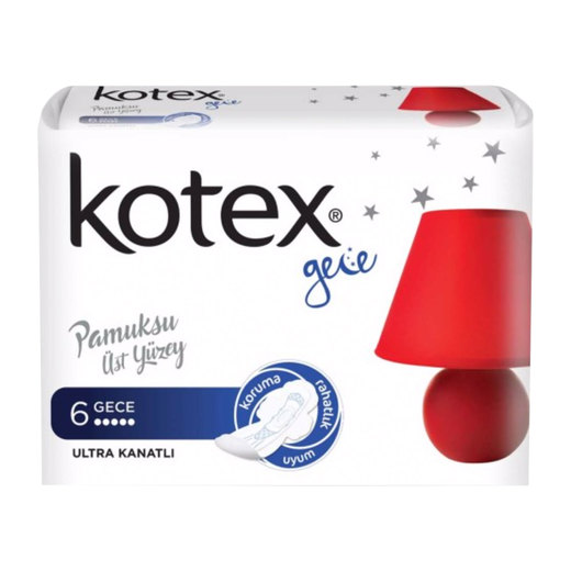 Kotex ultra kanatlı gece,pamuksu üst yüzeyi ve ipeksi dokuya sahip kanatları ile cildinize hak ettiği yumuşaklığı sağlar.Sızıntıları önlemek için geliştirilmiş hızlı emici merkezi ve koruma kanalları ile üstün koruma sağlar. Ergonomik tasarımı ve geliştirilmiş kanatları ile iç çamaşırınıza mükemmel uyum sağlar.