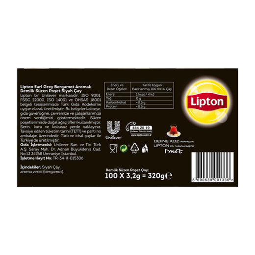 LIPTON Lipton Earl Grey Demlik 100'lü 320 gr
