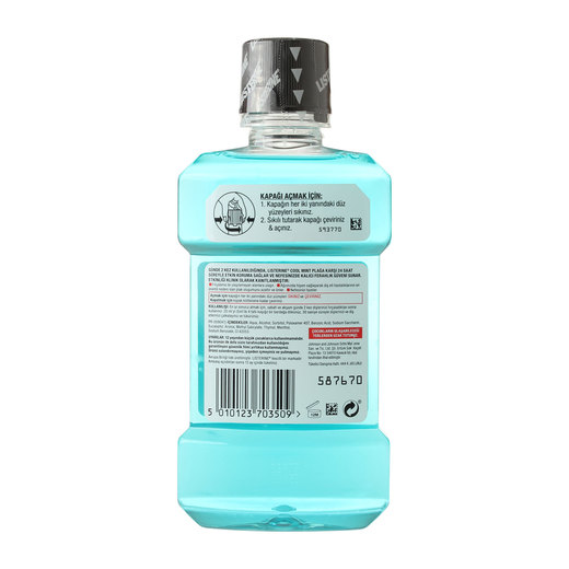 Plak ile savaşan ve nefesi tazeleyen günlük ağız bakım ürünü. Günde iki kez diş fırçalamaya ek olarak kullanıldığında Listerine cool mint çözücü olarak etanol içeren benzersiz formülü ile plak oluşumunu azaltır ve nefesinizi tazelemesine yardımcı olur.