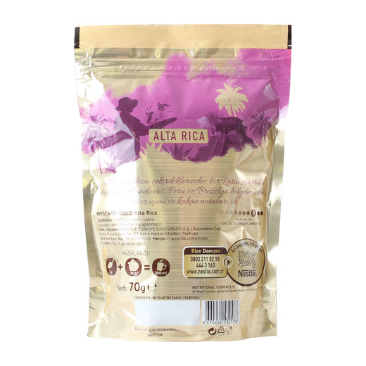 Güney Amerika bölgesinin tropik ikliminde ve yüksek rakımlı topraklarında yetişen kahve çekirdekleri özenle toplanıldı Nescafe Gold Origins Alta Rica, dolgun ve cesur tadıyla size yepyeni bir kahve deneyimi yaşatacak.