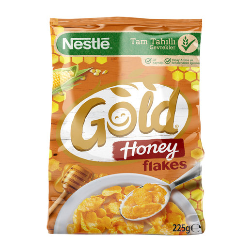 Nestle gold flakes,Kalsiyum demir ve 5 ayrı vitamin içerir. Ballı mısır gevreğiyle besleyici ve lezzetli bir kahvaltının tadını çıkarın.