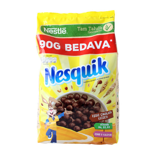 Sütle karıştırıldığında nefis kakaolu Nesquik tadına dönüşerek çocuklara sütü sevdiren kahvaltılık gevrek 6 vitamin, demir ve kalsiyum ile zenginleştirilmiş tam tahıllı içerik,Renklendirici içermez. Üstelik lif kaynağı!