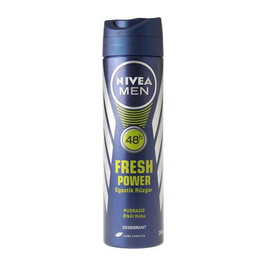 Nivea deodorant fresh power Sprey, ter kokusuna karşı gün boyu ferahlık veren deodorant koruması sağlar. Doğal, etkili ve mistik bir kokusu vardır. 48 saat etkili formülü boya ve koruyucu madde içermez. Cilt ile uyumu dermatolojik testlerle kanıtlanmıştır.