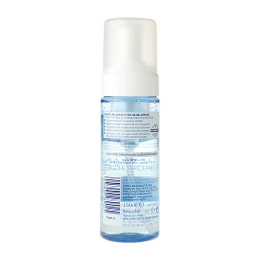 Nivea canladırıcı yüz yıkama köpüğü, E vitamini ve hydra IQ ile zenginleştirilmiş formülüyle, cildi derinlemesine ve nazikçe temizler, doğal nem dengesini korumak için nemlendirir, cildi günlük kirden kolayca arındırır ve canlandırır, E vitamini içeren formülü sayesinde cildi yıpratmaz.