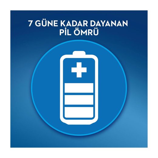 Diş fırçasının gövdesinde bulunan şarj edilebilir, kullanışlı pil sayesinde, diş fırçalamanın eğlencesi onlara bir düğmeye basmak kadar yakındır. Pil tek bir şarjdan sonra beş güne kadar kullanılabilir.