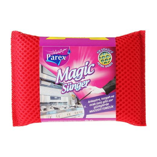 Parex magic sünger,kir sökücü özel petek doku çizmeden zor kirleri ve lekeleri kolayca temizler. File doku içinde bulunan sünger, kolayca köpürdüğü için etkin temizlik sunar. Mutfakta ve bulaşıkta mucizevi temizlik sağlar.