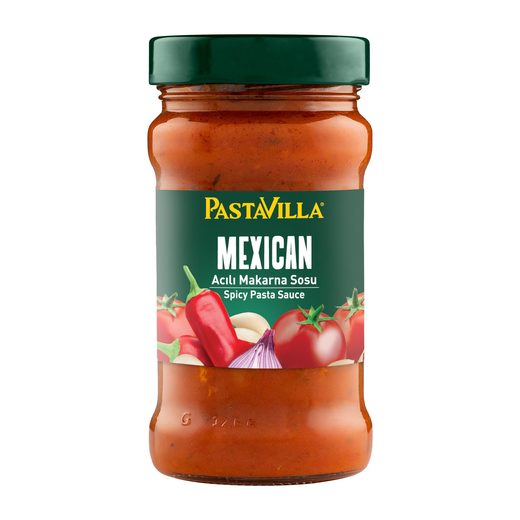 Pastavilla’nın özenle yetiştirdiği ve Türkiye’nin en kaliteli domatesleriyle hazırlanan %100 doğal Pastavilla Meksikan sos,içeriğindeki doğal ürünler ve baharatlarıyla,hafif acılı,Türk damak tadına uygun,kullanıma hazır,pratik, lezzetli bir sostur.