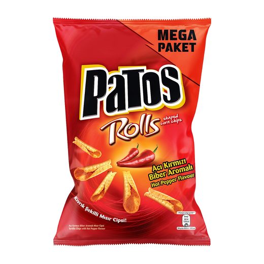 Acı kırmızı biber aromasıyla rulo formda çıtır ve yoğun lezzetli mısır atıştırmalığı. Yarattığı farklı ürün gamlarıyla her zaman orijinal, yenilikçi ve cesur bir duruş sergileyerek tüketicilerin en sevdiği cips markalarından biri haline gelen Patos, Doğuş'tan gelen enerjisiyle sevenlerine yepyeni sürprizler hazırlıyor.