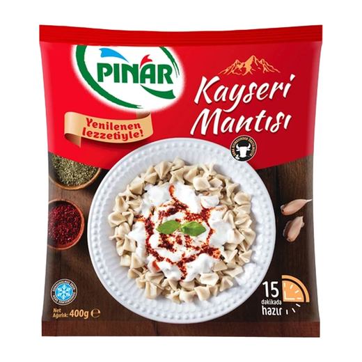 Kayserinin ünlü lezzeti Kayseri mantısı, İçerdiği %100 dana kıyması ve Pınar güvencesiyle sofralarınızda. Kayserinin ünlü ustalarının sırlarıyla hazırlanan bu geleneksel lezzet, katkısızdır.