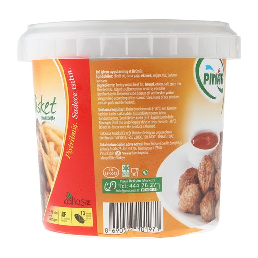 Kendine has, her damağa uygun lezzeti ve hafifliğiyle sofralara lezzet katan Pınar misket köfte, Pınar et güvencesiyle hindi etinden üretilir ve özenle pişirilir. Ön pişirilmiş olduğu için Pınar misket köfte’yi mikrodalga fırında sadece 2 dakika ısıtmak yeterlidir.