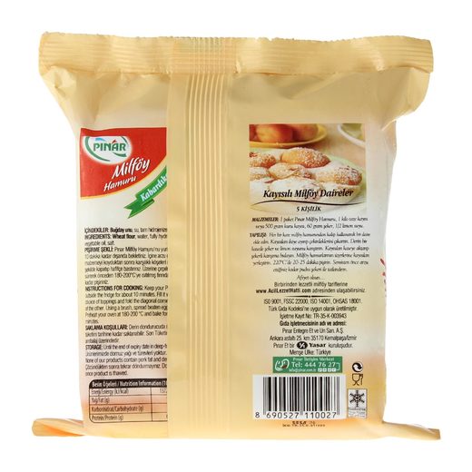 Kabardıkça kabaran Pınar milföy hamurunun bir tanesi 128 kattan oluşur. Çeşit çeşit hamur işi ve börek tariflerinizin gözdesi Pınar Milföy Hamuru, koruyucu katkı maddesi de içermez.