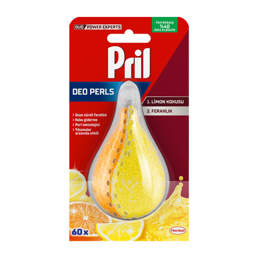 Pril deo perls uzun süreli ferahlık sağlar ve makinenizdeki kötü kokuları etkisiz hale getirir. Özellikle bir bulaşık makinesi her gün kullanılmıyorsa, makinede kötü kokular oluşabilir. Makinenizin ferah kokması için Pril deo perls kullanın.