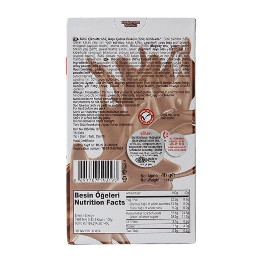 ŞÖLEN Şölen Biscolata Stix Sütlü 40 gr