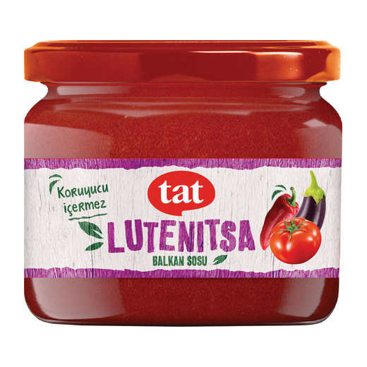 Tat Lutenitsa Sos, közlenmiş kırmızı biber, közlenmiş patlıcan, sarımsak ve baharatların muhteşem birleşimiyle sofralarınızın vazgeçilmezi olacak.İster kahvaltıda, ister meze olarak veya ekmek üzerine sürülerek pratik bir lezzet olarak tüketilebilir.