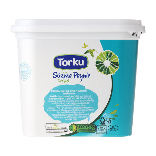 Torku taze tam yağlı süzme peynir. Yumuşak bir yapısı olan süzme peynir dilimlenebildiği gibi sürülmesi de mümkündür.