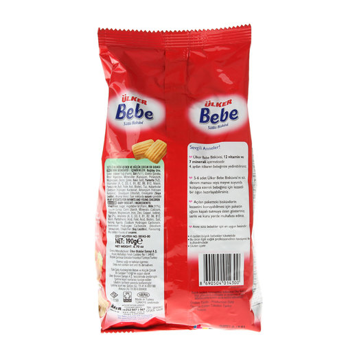 Bol süt ve yumurtanın yanı sıra bebeğinizin gelişimi için gerekli 12 vitamin ve 7 minerali içeren Ülker bebe bisküvisi hem besleyici hem lezzetli öğünler için idealdir.