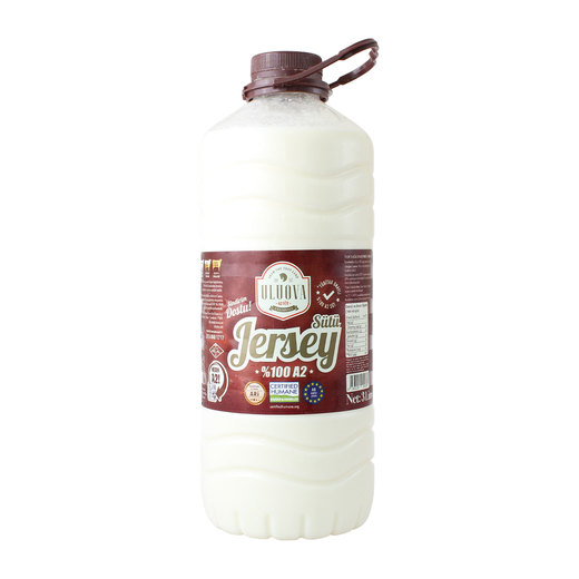 Yüzde yüz A2 süt veren özel Jersey ırkı ineklerimizin zengin sütünün besin değeri çok yüksek. Diğer sütlere göre yüksek enerji sağlayan Jersey sütünde yağda ve suda eriyen vitaminlerin hepsi bulunur. Yoğurttan tatlıya, çorbadan içime kadar farklı besinler için daha çok kullanmak isteyenler için 3 litrelik şişelerde.
