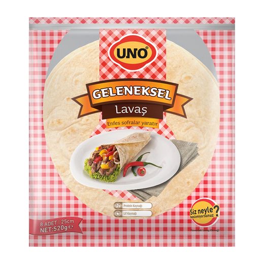 Uno Geleneksel Lavaş, birbirinden lezzetli dürümler ve wrap'ler hazırlamak için tercih edilebilir.
